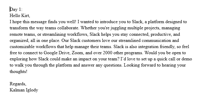 Building a proper sales sequence is important in order to get the word out about your product. A Sales Sequence consists of selling a product through a detailed list of calls and emails to a prospect. Above is a template of how I would go about my sales sequence and to the right is an example email to someone on my list.